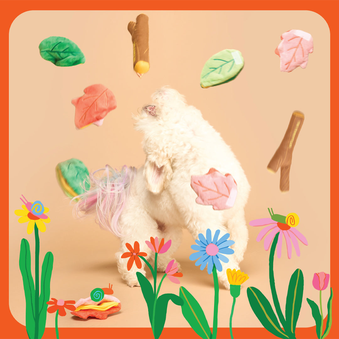 WATCH THE SPRING COLORS FLY AS YOUR PUP DIVES INTO A WHIRLWIND OF HIDDEN TREATS AND SOFT CHEWS. 🦴✨ -